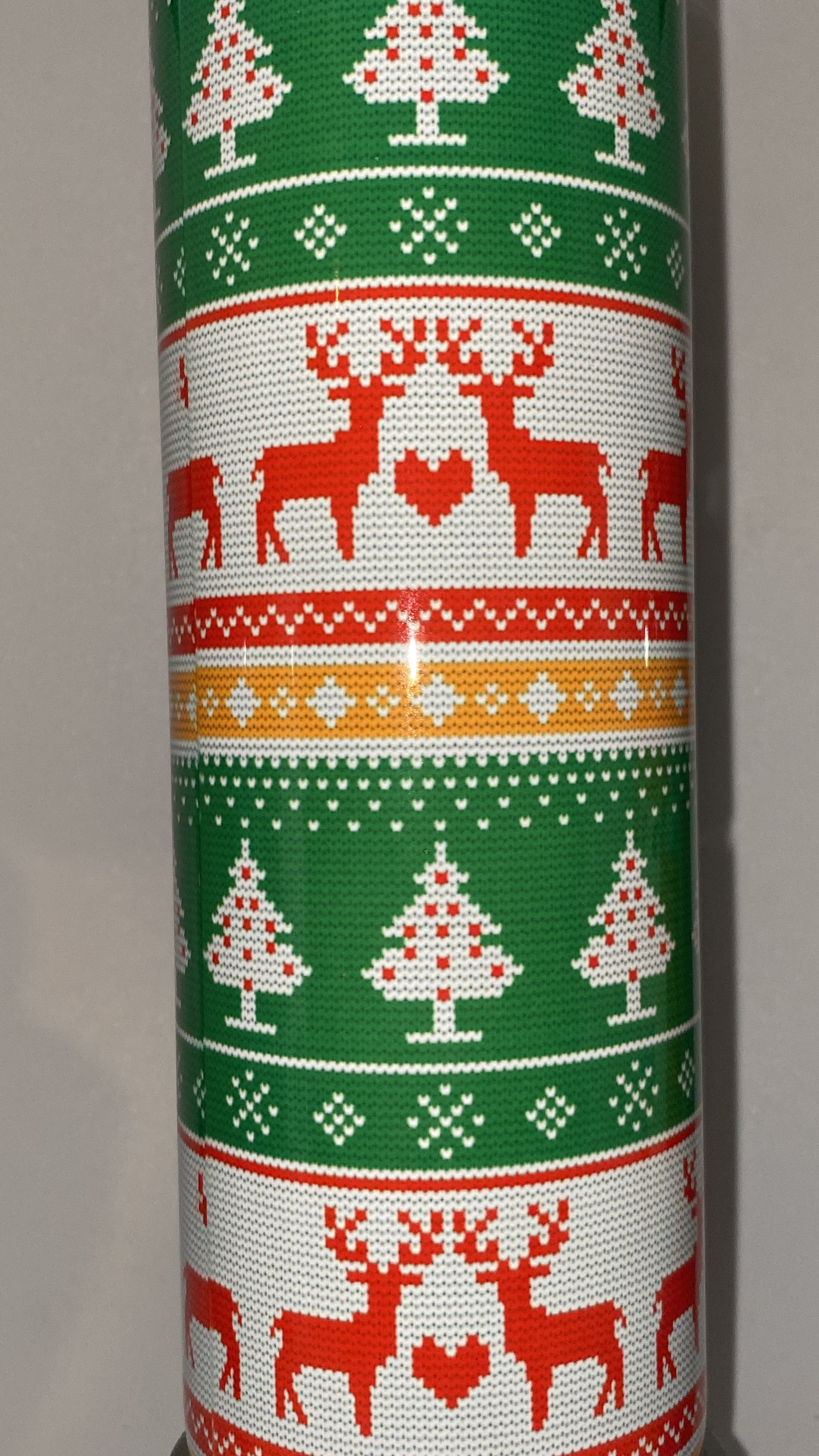Super Fun Christmas Holiday 20 oz. tumbler. This retro holiday design is perfect for the holiday season. Or gift it - or both! Wonderful quality & handmade sublimated infused ink, so it will not fade.