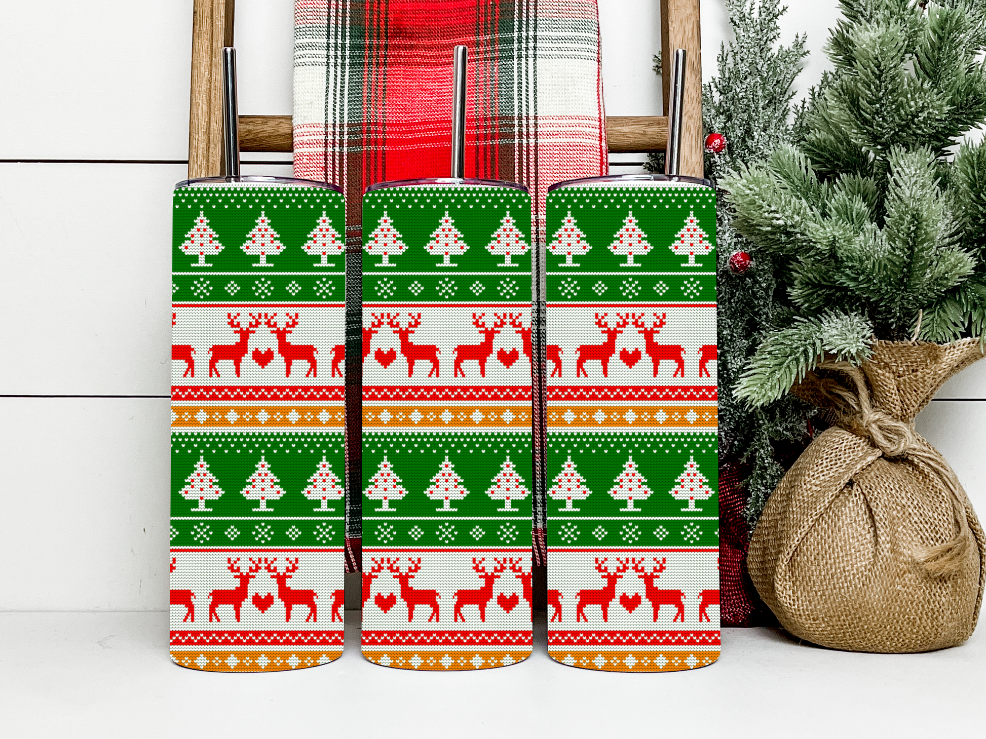 Retro Christmas Sweater Holiday Deer Party Tumbler 20 oz Hot and Cold Drinks Double Insulated